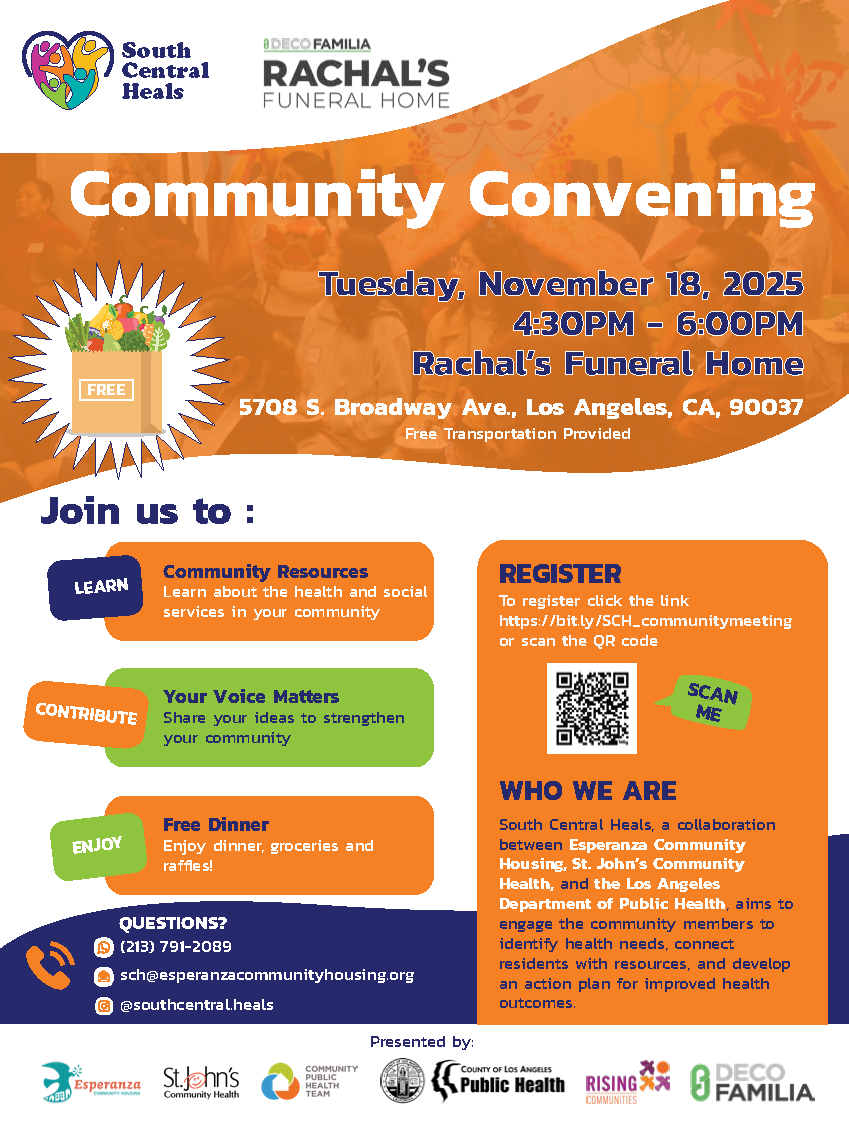 from an organization contracted with Public Health. After the assessment, the CHW will offer to connect you to services based on your responses. Anyone living in or near the service area will also be invited to join community meetings to learn about the project and how to get more involved.
